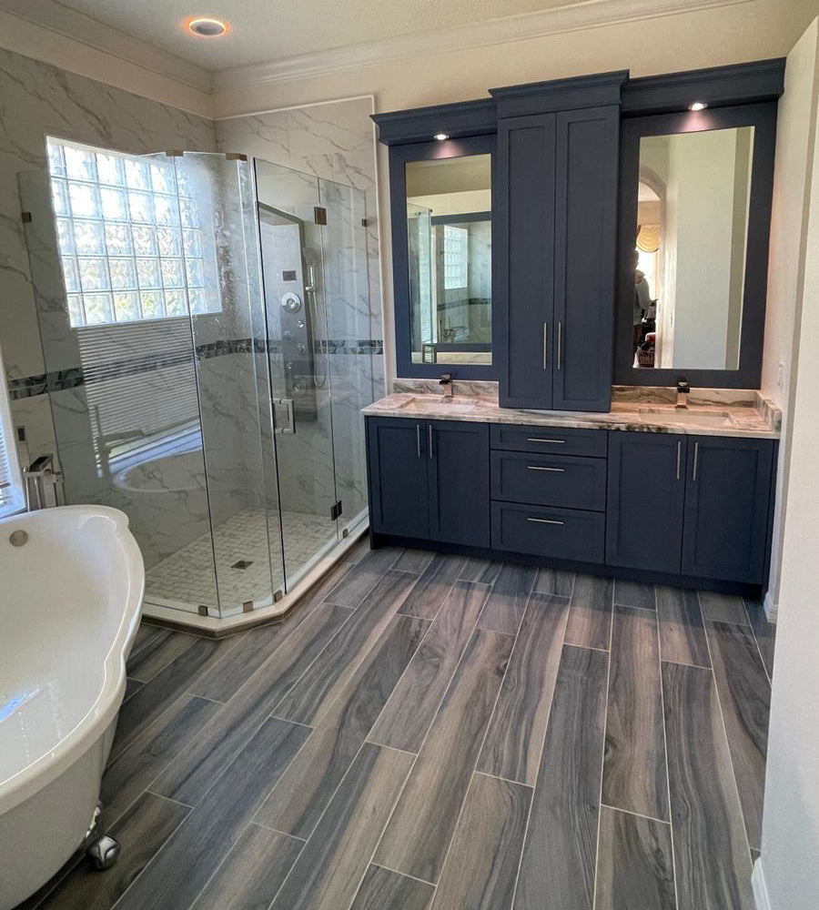 We offer a wide array of bathroom vanity online but we also make them custom. You could buy one online and we will install it for you, or you can book an appointment and we will make one custom for you.